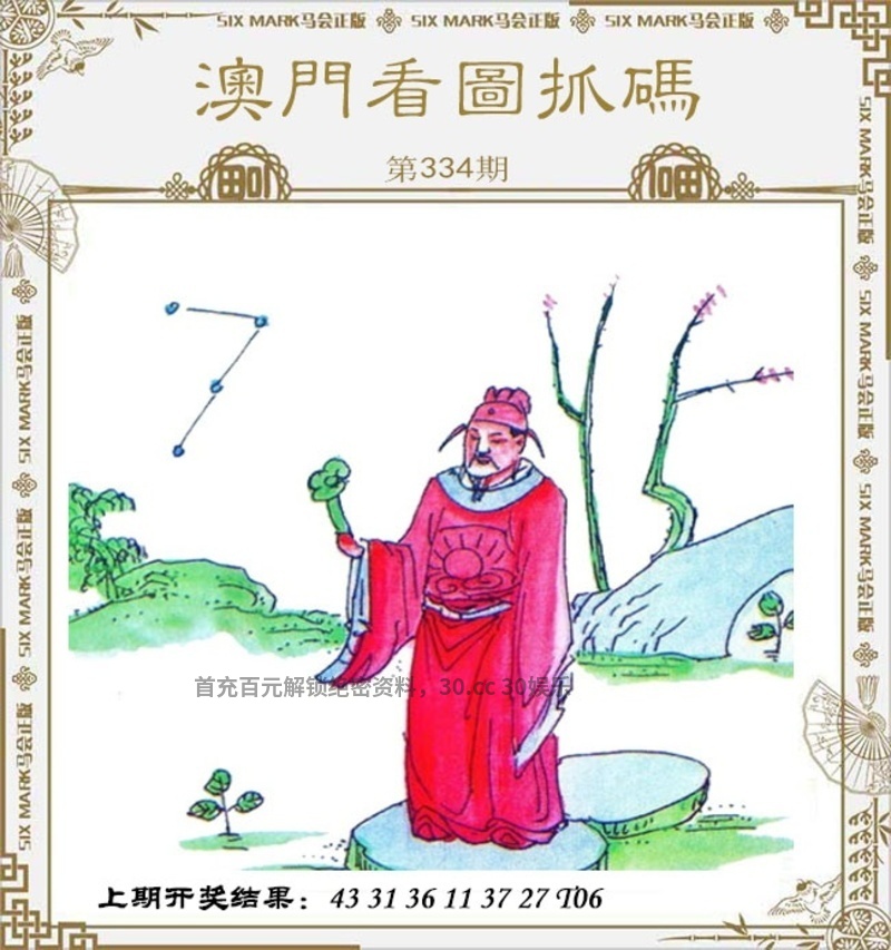 【妙解看图抓码】334期:图中有一个人物身着红色长袍,头戴帽子,留有黑色胡须,手上似乎拿着一个绿色的球状物体,他站立在一个石头平台上,左上角的图中像是北斗七星。 【看图抓码主看】:虎狗猴鼠猪马 |